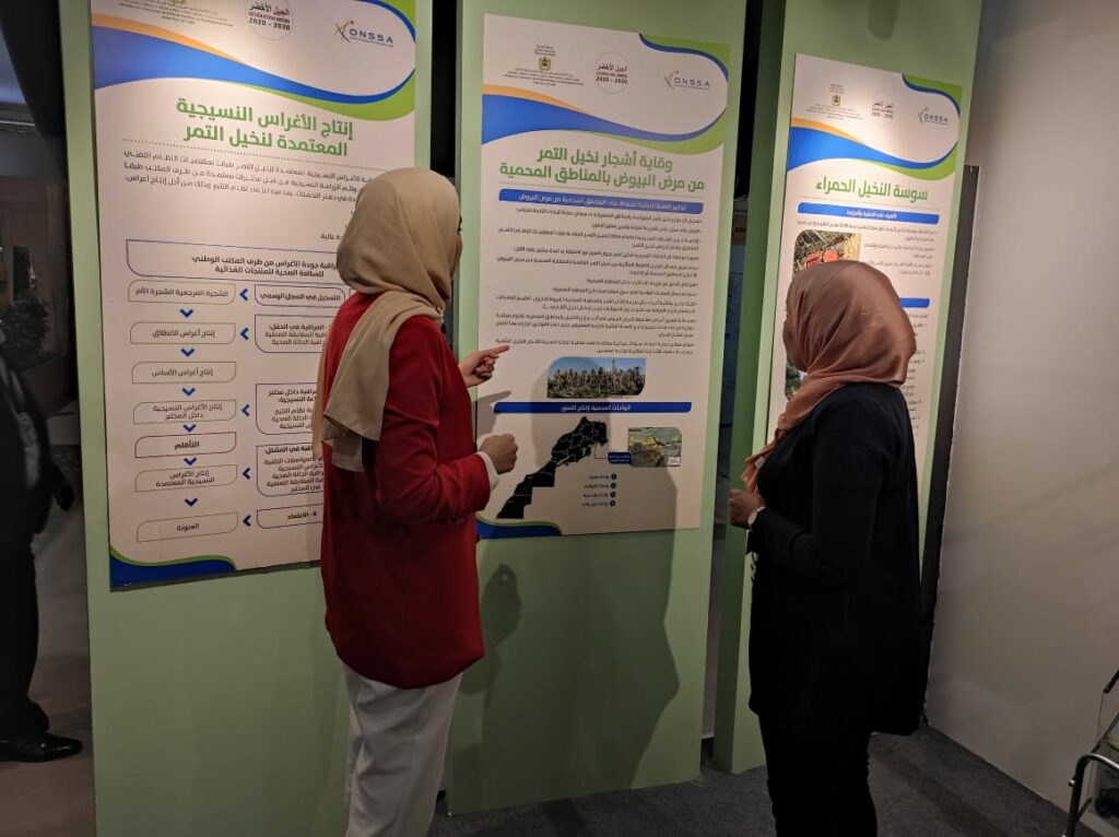 على هامش المعرض، أدار أطر المكتب ورشات عمل للتعريف بالاستراتيجية الوطنية لمكافحة سوسة النخيل الحمراء ومراحل الإشهاد الصحي للأغراس النسيجية المعتمدة لنخيل التمر، بهدف تحسيس فاعلي القطاع بالقوانين الجاري بها العمل التي تؤطر جودة وسلامة التمور.
