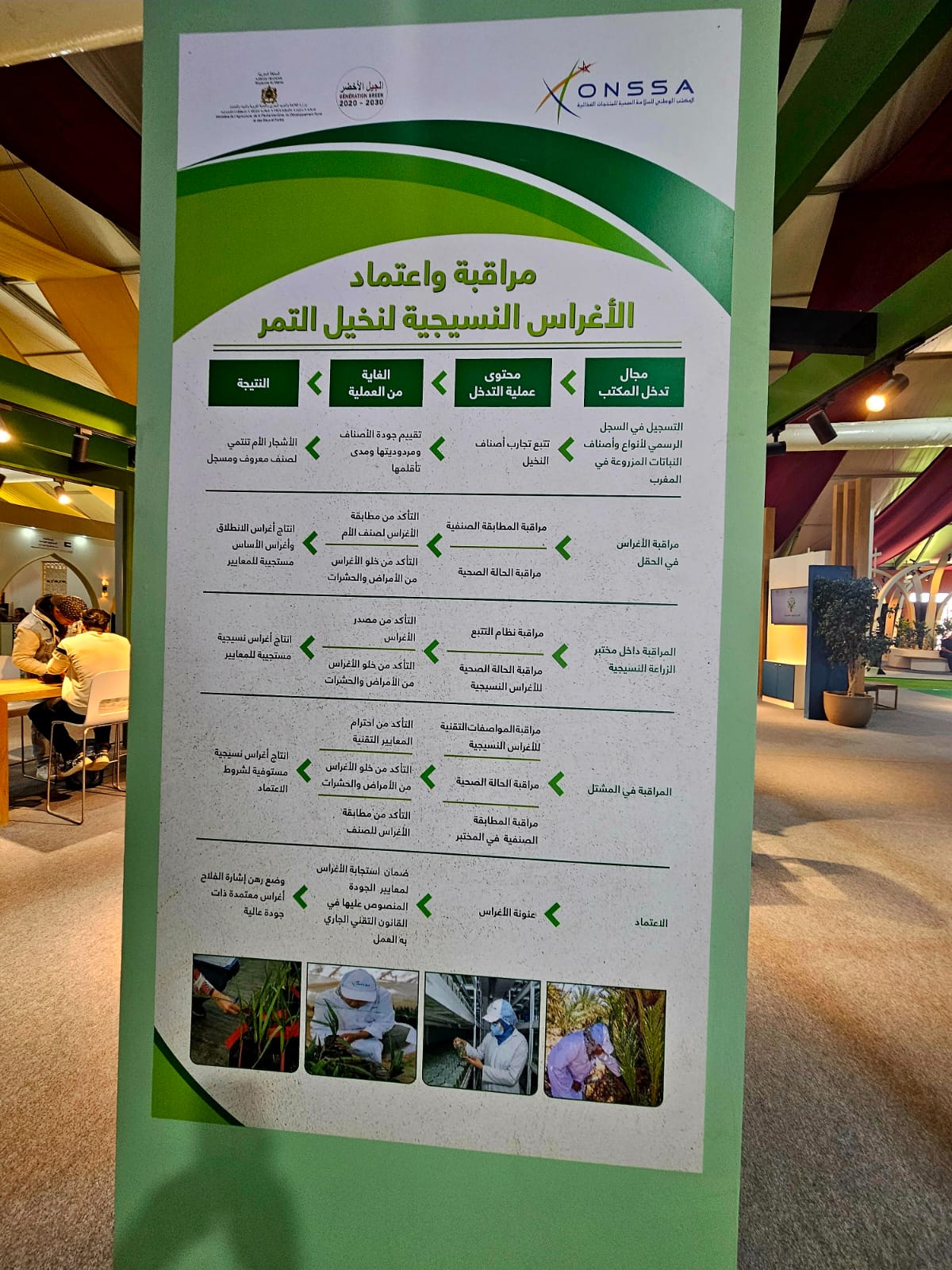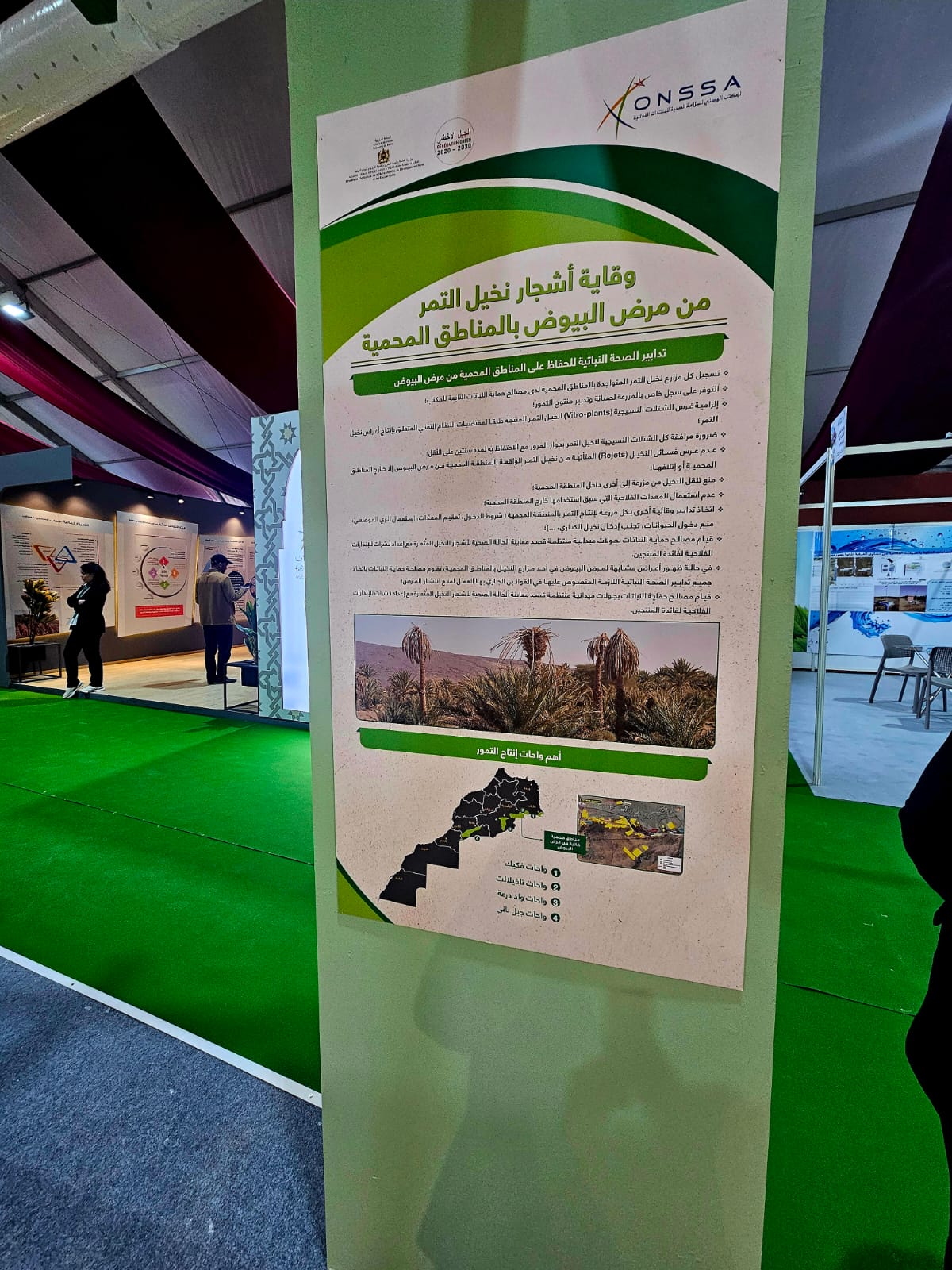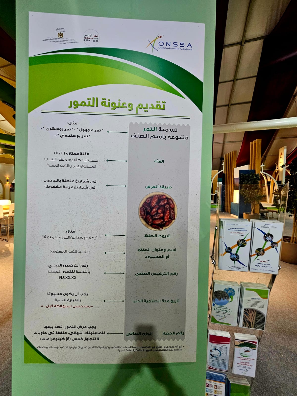 Dans son stand, au pôle institutionnel, l’ONSSA a présenté le processus de contrôle et de certification des plants de palmier dattier, les actions phytosanitaires entreprises pour la protection contre les principales maladies touchant le palmier dattier ainsi que la règlementation régissant l’étiquetage des dattes.